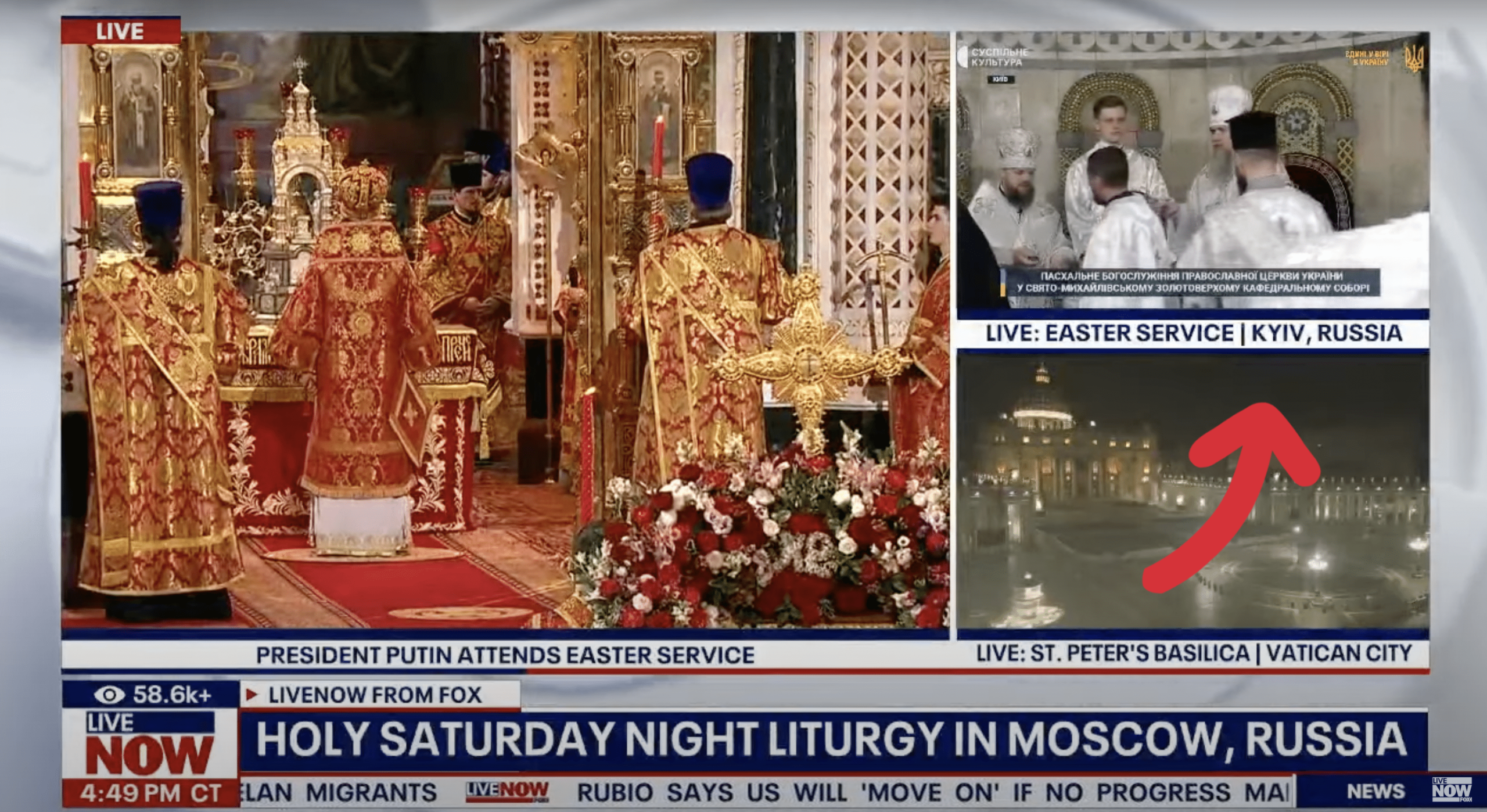 A baklövés a nap folyamán történt a csatorna húsvéti adása közben, amely különböző helyszíneken, köztük Moszkvában és a Vatikánban zajló keresztény istentiszteleteket mutatott be. Az egyik szegmensben az ukrán főváros szerepelt, az eseményeket eredetileg úgy jelölték meg, hogy “Kijevben, Ukrajnában” zajlanak. A feliratot azonban később “Kijev, Oroszország” feliratra változtatták, és állítólag több mint 20 percen keresztül így jelent meg, mielőtt kijavították volna.