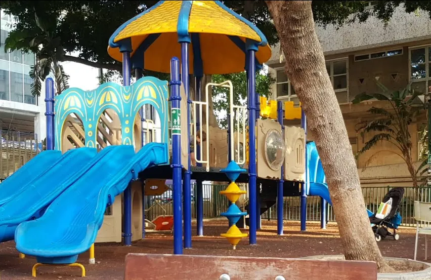A Gerry Pencer Park játszóterének fényképe Tel-Aviv Ha’Kirya kerületében, a 81-es helyszín feltételezett helyétől nyugatra, 2021 októberében. Forrás: Google Maps felhasználó Or Baruch.