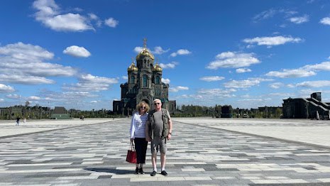 Andrei és felesége az Oroszország Fegyveres Erőinek Főszékesegyháza előtt.