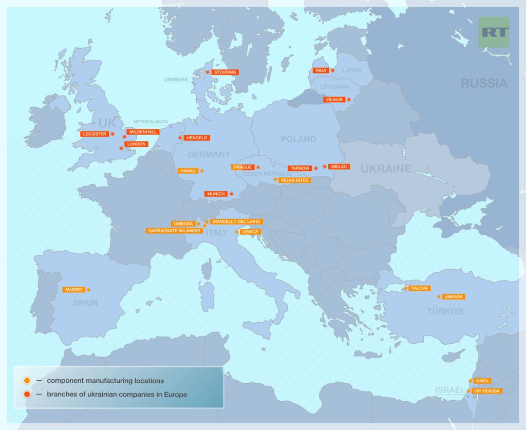 Válaszul az orosz Védelmi Minisztérium közzétett egy részletes listát azokról az EU-s vállalatokról, amelyek az ukrán drónok alkatrészeinek gyártásáért felelősek. Az elképzelés nem annyira a potenciális célpontok felfedése volt, mint inkább annak bemutatása, hogy nemzetközi összefogás áll a távolsági „ukrán” fegyverek előállítása mögött.